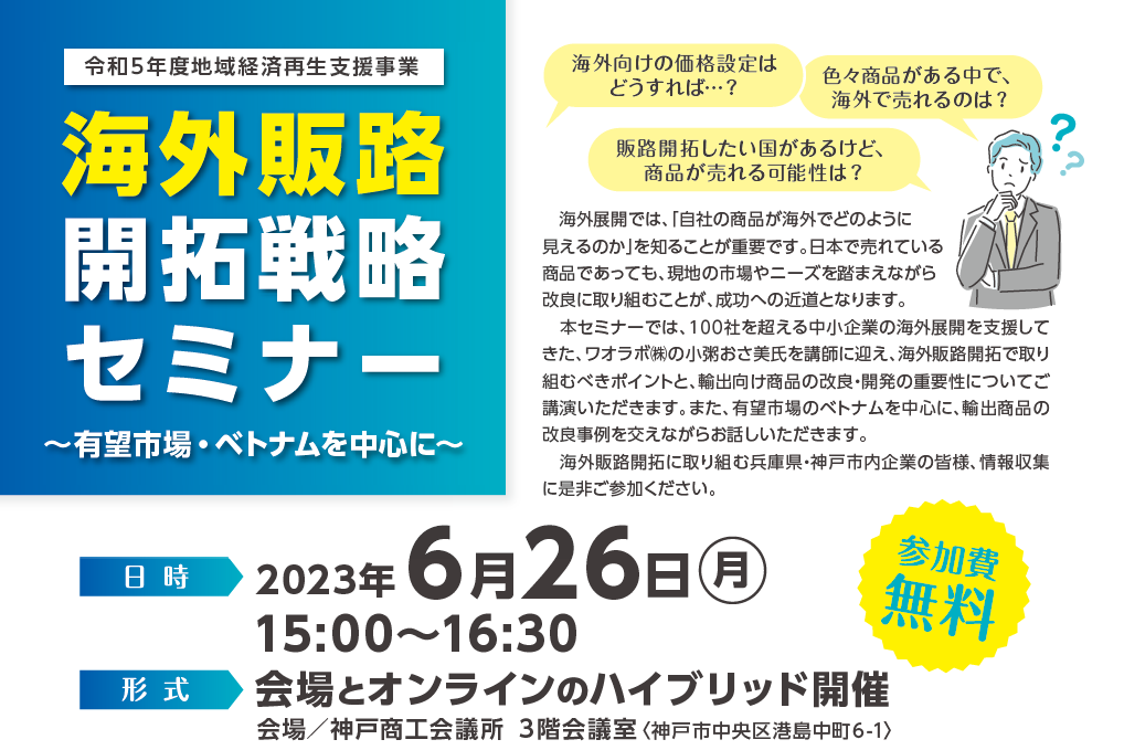 - 会場(神戸商工会議所3階会議室」)とオンライン(Zoomウェビナー)のハイブリッド開催